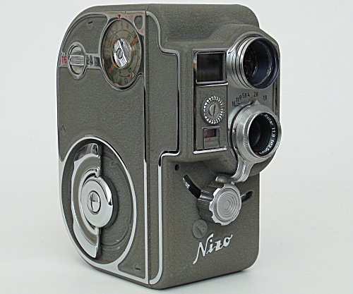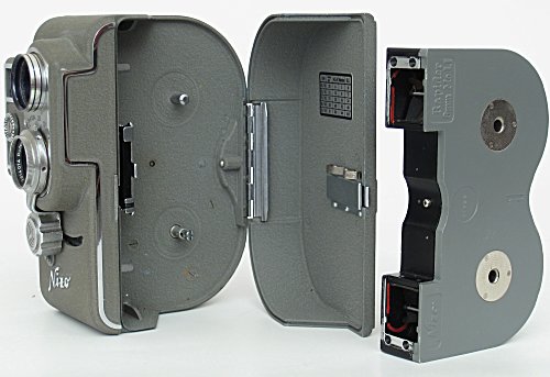 The Exposomat was produced in three variants: Type R stands for "Rapider", a patented magazine to be filled with double-8 standard film facilitating the "turnaround" of the half exposed film. Type M for Kodak magazines and finally type T for the usual double-8 film rolls. On the photo is a type R. Launched in 1955 Body in cast aluminium, wrinkle enamel and chromium elements Lens: Rodenstock Ronar 1:1,9 / 12,5 mm Semi-automatic exposure Release button and diaphragm lever grouped together, forming a bi-directional command Frame rates: 16 and 24 fps |